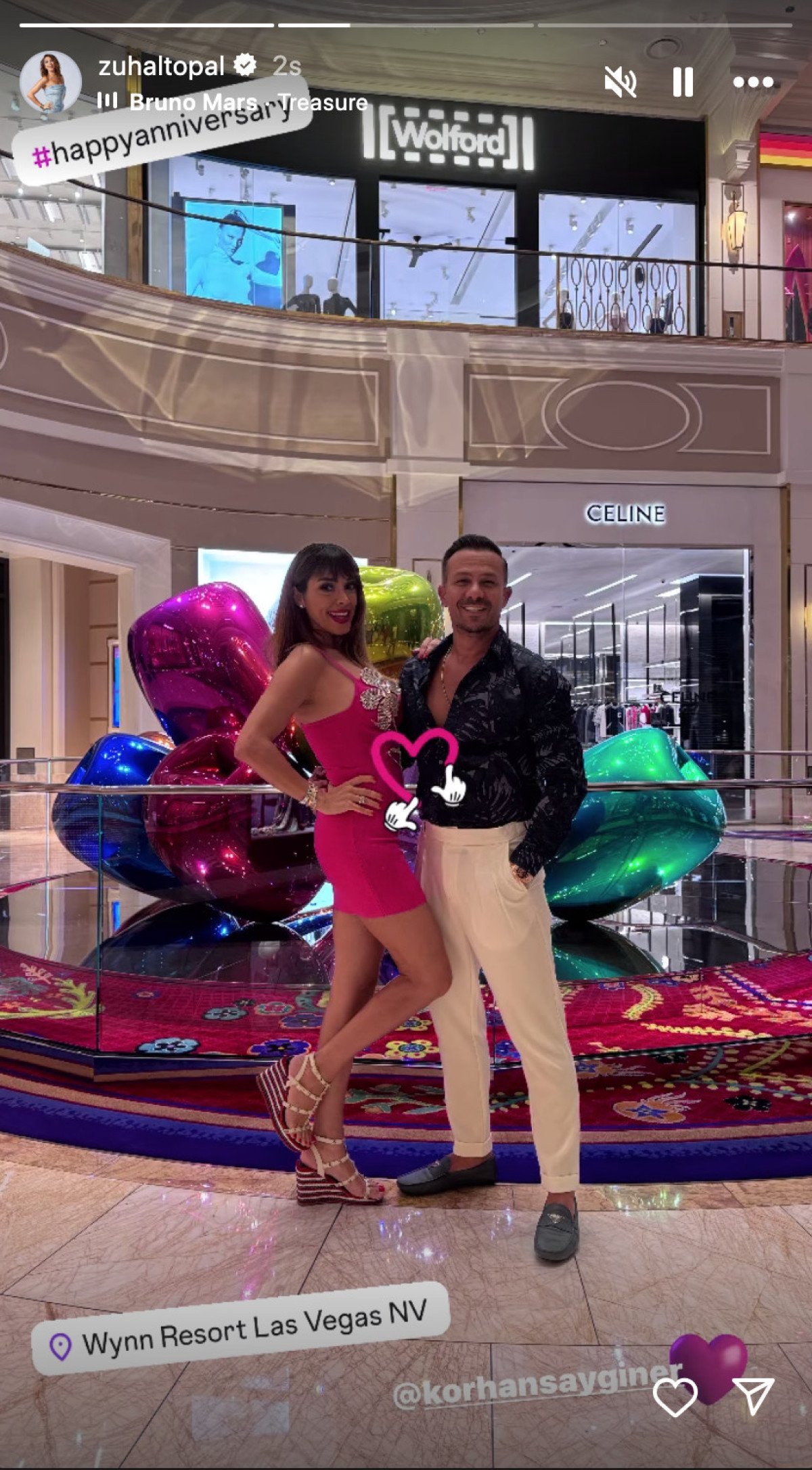 Las Vegas’ta kutlama yapan ünlü çiftin romantik karelerine beğeni ve yağdı.