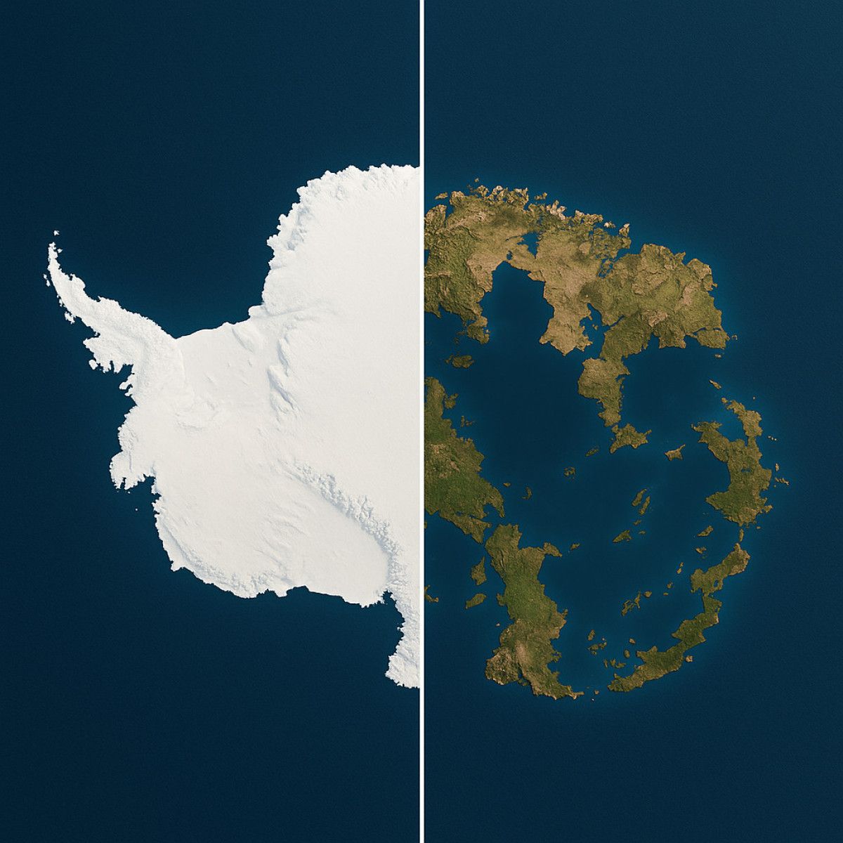 ChatGPT yanıtladı: Antarktika buzsuz hâli, yani buz tabakası tamamen erimiş ve yalnızca kara parçası açığa çıkmış bir senaryoda kıta, bugün bildiğimiz yuvarlak-beyaz görünümünden çok farklı ve parçalı bir ada grubu gibi görünürdü. İşte, o hali..