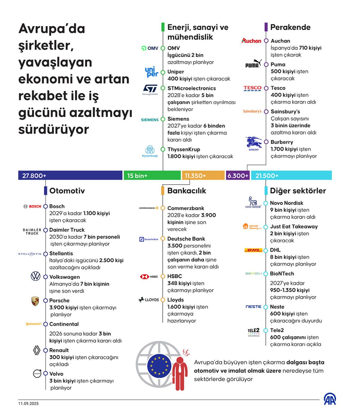 Avrupa’da büyüyen işten çıkarma dalgası başta otomotiv ve imalat olmak üzere neredeyse tüm sektörlerde görülüyor.