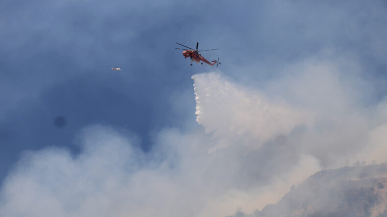 Ormanlık ve zirai alanda etkili olan alevlere karşı 7 hava aracı, 32 arazöz, 7 kepçe, 9 su tankeri, 244 personelle müdahalede bulunuluyor.
