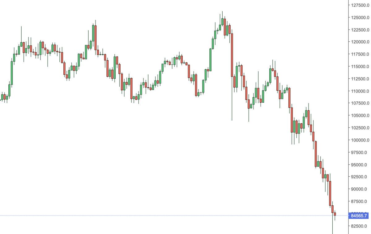 Ekim ayında 126 bin 198 dolara yükselerek tarihi zirvesine ulaşan Bitcoin fiyatları, an itibarıyla zirvenin yüzde 33,6 gerisinde bulunuyor.