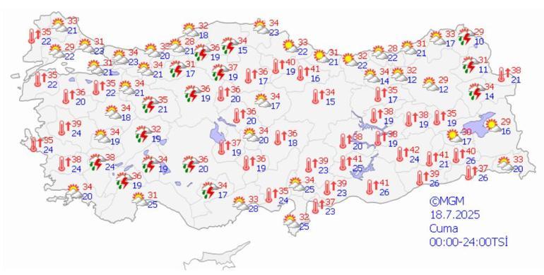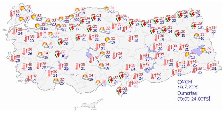 Meteoroloji Genel Müdürlüğü tarafından yapılan tahminlere göre: Ülkemiz genelinin parçalı ve az bulutlu, Akdeniz ve Batı Karadeniz’in iç kesimleri ile Ankara, Çankırı, Eskişehir, Konya, Karaman, Afyonkarahisar, Denizli, Kastamonu, Kars, Ardahan ve Ağrı çevrelerinin yerel olmak üzere sağanak ve gök gürültülü sağanak yağışlı geçeceği tahmin ediliyor.