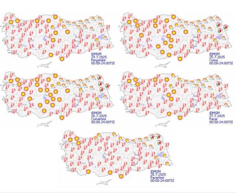 Bu 42 ilde sıcaklık, ilçelere göre 35 ile 44,6 derece aralığında seyretti.